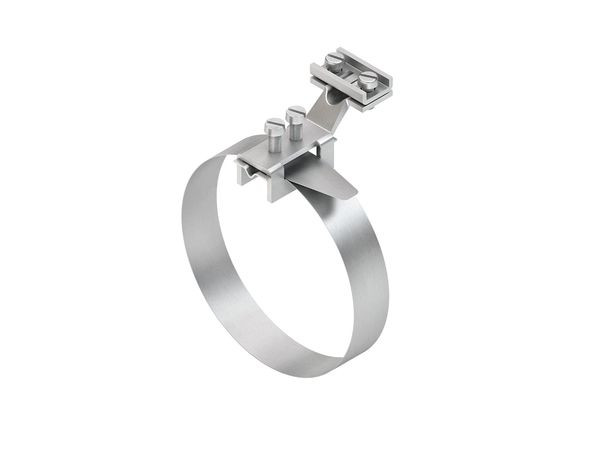 Erdungs-Bandschelle mit Universal-Anschlussklemme, für Längsverbindungen in trockenen Innenräumen. Verwendbar für : Rohrleitungen aus verzinktem Stahl, Kupfer und rostfreiem Edelstahl. Abmessungen (ca. Maße) Schellenbreite : 77 mm Bandbreite : 23 mm Bandlänge : 212 mm für Rohr-Ø : 25 - 48 mm für Leiterquerschnitte : 25 mm² - 70 mm² Werkstoff Bügel und Druckstück : Messing, vernickelt Werkstoff Schellenband : Bronze, vernickelt Werkstoff Schrauben : Stahl, galvanisch verzinkt, blaupassiviert
