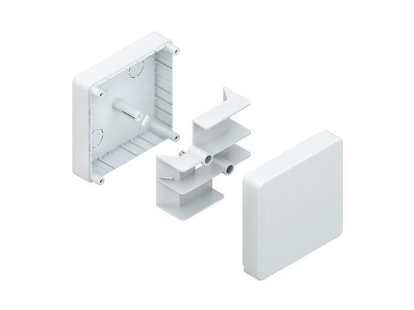 Abzweigdose, mit vorgeprägten Ausbrechperforationen zur Einführung der Elektroinstallationskanäle, halogenfrei. für Elektroinstallationskanal : HKL1022.6 HKL2020.6 HKL2030.6 HKL2031.6 HKL2052.6 Abmessungen (ca. Maße) H x B x T : 90 x 90 x 35 mm Werkstoff : ABS (Acrylnitril-Butadien-Styrol) Farbton : cremeweiß RAL : 9001 (ähnlich)