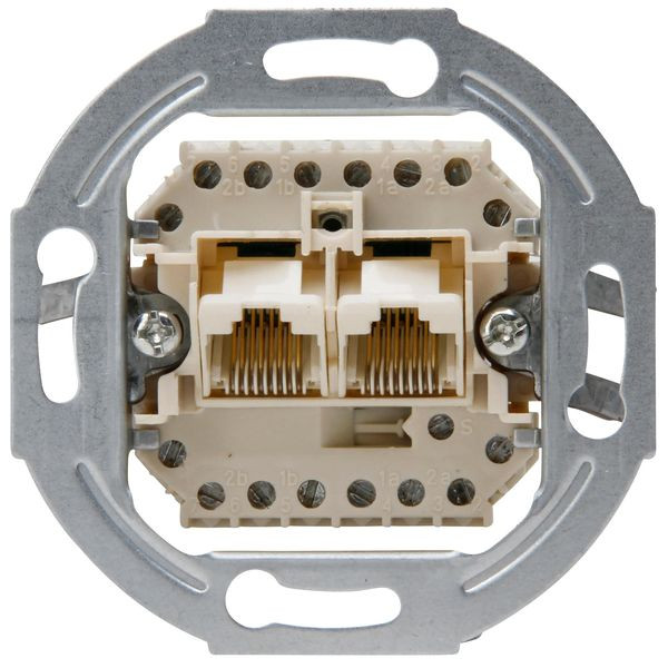 Unterputz UAE Anschlussdose, Universal-Anschluss-Einheit fürTelefon-und Datentechnik, ISDN-fähig, RJ11/12, RJ45, mit Schrägauslass, Schraubkontakte, 8 Pole belegbar, 2 getrennte Steckanschlüsse