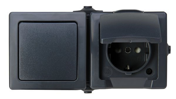 | Kurzbeschreibung | NAUTIC - Aufputz-Feuchtraum, Aus-/Wechselschalter-Steckdosenkombination waagerecht, Farbe: anthrazit |