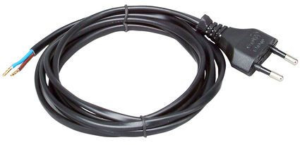 | Kurzbeschreibung | Europa-Zuleitung, Europa-Stecker und abgemanteltes Leitungsende mit Aderendhülsen, 2-polig, Farbe: schwarz |
