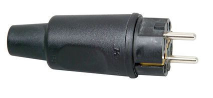 | Kurzbeschreibung | Schutzkontakt-Vollgummistecker, schwere Ausführung, bruchfest, schlagfest, mit 2 Stecksystemen, für Kabelquerschnitt bis 3x2,5mm², Farbe: schwarz |