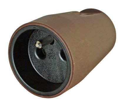 Export: Kunststoff-Mittenschutzkontakt-Kupplung, 16A, 250 V~ bruchfest, für Kabelquerschnitt bis 3x1,5mm², Schutzart IP20, Farbe: braun