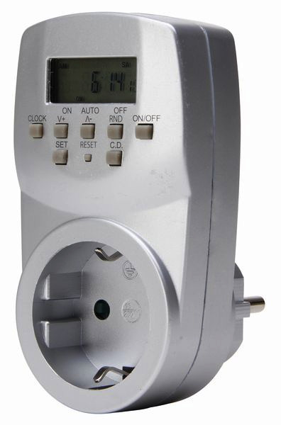 | Kurzbeschreibung | Zeitschaltuhr Mini, digital, erhöhter Berührungssschutz, Count-Down und Zufallsfunktion, 140 Programme, max. 1.800W, Farbe: silber |