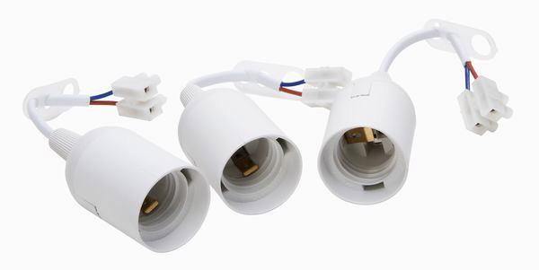 Renovierfassung E27, mit Lüsterklemme und Zugentlastung, vormontiert mit ca.13cm sichtbarer Leitung H03VV-F2x0,75mm², max. 75W, Inhalt: 3 Stück, Farbe: weiß