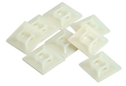 Befestigungssockel für Kabelbinder, selbstklebend oder anschraubbar, Inhalt: 25 Stück, Maße: 25x28x28x7,5mm, Montagebohrung: 5mm, Material: PA 6.6
