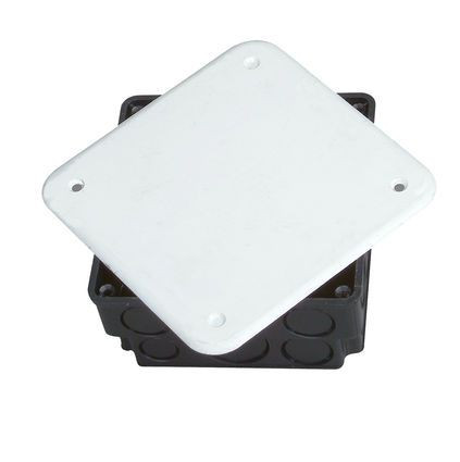 Abzweigkasten, Isolierstoff, mit Deckel, Unterputz, 100x100x50mm, Farbe Deckel: weiß, Farbe Unterteil: schwarz
