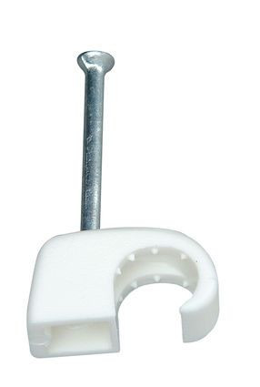 Iso-Nagelschellen, für Kabel mit einem Durchmesser von 7-10mm, mit gehärtetem 30mm Nagel, Farbe: weiß