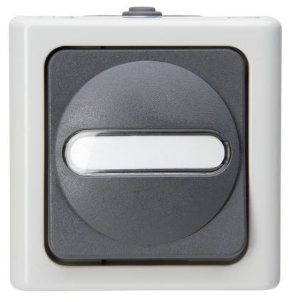 BLUE ELECTRIC - Aufputz-Feuchtraum Taster (Schließer), Bemessungsspannung 250V~, Schaltvermögen 10AX, Schutzart IP44, Farbe: grau