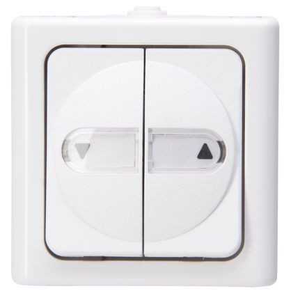 BLUE ELECTRIC - Aufputz-Feuchtraum, Jalousie-Taster mit Umkehrsperre - elektrisch und mechanisch verriegelt, Betätigungswippen mit Pfeil-Symbol, 10AX, 250V~, IP44, Farbe: arktisweiß