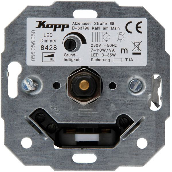 Dimmer Sockel mit Druck-Wechselschalter für dimmbare 230V LEDs von min. 3 bis max. 35W, auch für Glüh-, 230V-Halogenlampen und Niedervolt-Halogenlampen mit konv. Trafo von min. 7 bis max. 110W/VA geeignet
