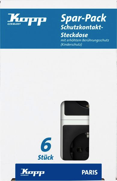 | Kurzbeschreibung | PARIS - 6x Schutzkontakt-Steckdose, mit erhöhtem Berührungsschutz, Farbe: schwarz matt |