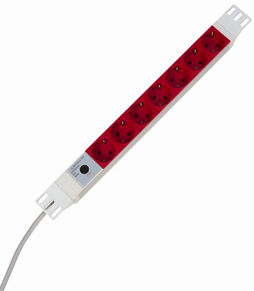 | Kurzbeschreibung | PROFIversal 7-fach, USV-Schutzkontaktsteckdosenleiste, Sicherung 10A, 19", 2m Zuleitung mit Kaltgerätestecker, Farbe: aluminium-rot |