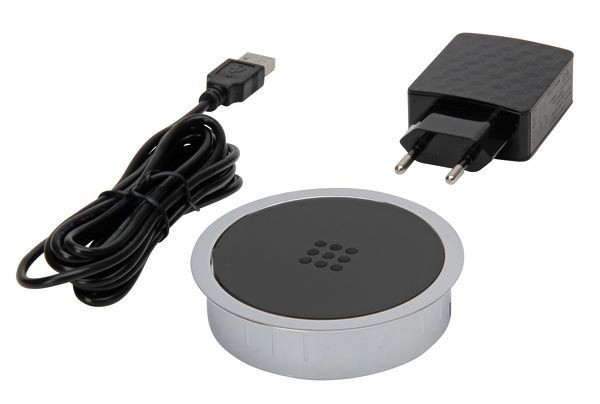 VersaCHARGER zum induktiven Laden von Smartphones, Ausführung: Ring chrom - Fläche schwarz, inkl. Netzstecker und 2 Meter Anschlußkabel (USB A auf USB B Micro), Bohrung 80mm, Eingang 5V (DC) 2A, Ausgang 5V (DC) 1A, Gesamtausgangsleistung 5 Watt, IP20