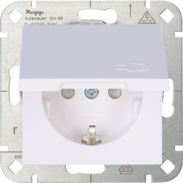 HK07 - Schutzkontakt-Steckdose, mit Klappdeckel und erhöhtem Berührungsschutz, Nennstrom 16A, Bemessungsspannung 250V~, Schutzart IP20, Farbe: arktisweiß