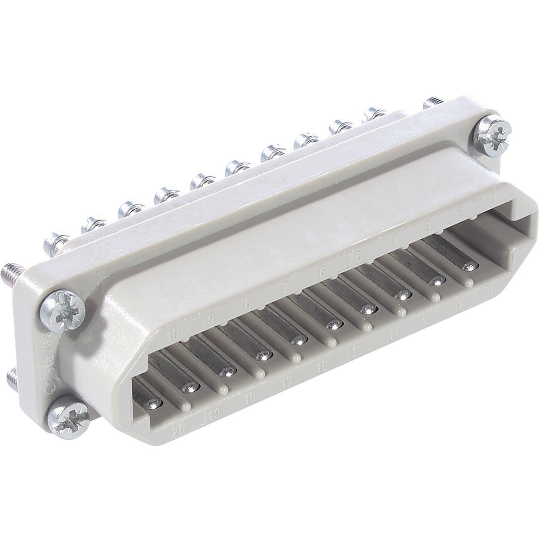 Einsatz mit Lötanschluss EPIC® STA 20 SL; Einsatz mit Lötanschluss Stift; Anzahl der Kontakte: 20; Baugröße: 16A; 24 V AC rms nach IEC; 7 A nach UL/CSA; Für Querschnitt (min./max.): 0.5mm² - 1.5mm²; Kontakte inklusive; Polycarbonat; Anwendungsgebiete: Elektroniklabor;Steuerungsanlagen;Einschubtechnik; Nutzen: gute Kontaktierung durch die starken Kontakfedern;Die bewährten STA Einsätze mit Federkontakten