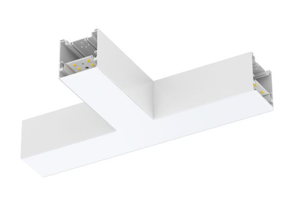 T-Eckverbinder - Verbindungsstück zur Kreation individueller Leuchtenformen - 15 W starker, beleuchteter T-Eckverbinder zur Kreation vielfältiger Formationen mit nahezu nahtlosem Licht in Kombination mit der LED Linearleuchte CENORA. Abhängig von der Einstellung der LED Linearleuchte CENORA sind Farbtemparaturen von 3000 / 4000 / 5000 K wählbar. Farbe: weiß, Maße L x B x H: 343 x 200 x 76 mm.