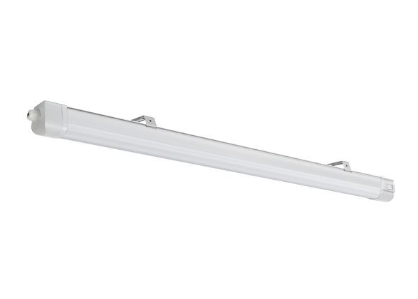 LED Langfeldleuchte IMPACTO / IMPACTO smart - Industrielle Feuchtraumleuchte mit HACCP-Zertifizierung - Die LED Langfeldleuchte IMPACTO ist eine industrielle Feuchtraumleuchte mit HACCP-Zertifizierung für Lebensmittelsicherheit, die durch ihren flexiblen Aufbau auf Nachhaltigkeit setzt und mit überzeugenden Vorteilen punktet. Montierbar an Wand- oder Decke oder als Hänge-Variante, bietet der mit IP65 und IK08 klassifizierte Vielseiter ein breites Spektrum an Einsatzmöglichkeiten, das durch Versionen mit DALI-Dimmung und Sensor attraktiv erweitert wird. Neben einer einfachen Installation, sind Leistungs- und Farbtemperatureinstellungen schnell vornehmbar. Schnell und einfach sind die Endkappen zu lösen, die Zugriff auf die 5- bzw. 7-polige Durchgangsverdrahtung sowie das herausziehbare LED-Modul geben. Auf dessen Rückseite befinden sich der EL-zertifizierte Treiber und der Farbtemperaturumschalter. Durch wechselbare Komponenten lässt sich die Leuchte flexibel ändern oder ergänzen.