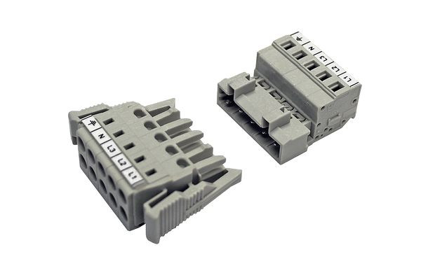 Mit dem 5-Poligen Stecker-Set, bestehend aus einem Männlichen- und einem Weiblichen -Stecker, können Lichtbandreihen, mittels geeigneter Leitungen/Kabel, miteinander verbunden werden. Der Stecker mit Schnellklemmen kann werkzeuglos angeschlossen werden und ist für eine Verdrahtung mit 5x2,5mm² geeignet.