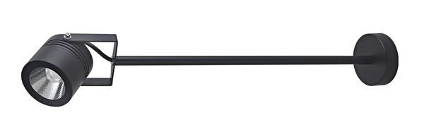 Pulverbeschichteter Wandstrahler aus Aluminium-Druckguss, Diffusor aus Floatglas, Durchmesser Leuchtenkopf 90 mm, Wandabstand 680 mm, 1x LED 15 Watt, ca. 3000 Kelvin, 1680 lm, Abstrahlwinkel 38°, Schutzart IP54, schwarz, Spannung 220-240 V 50/60 Hz