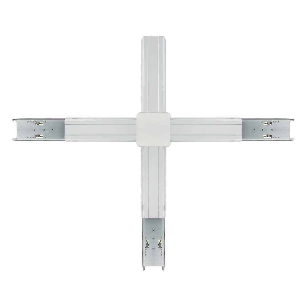 X-förmiger Schienenverbinder für Ecken. Produkteigenschaften: Durchvedrahtet mit 5- oder 8-poligem Kabel. Ein Knotenverbinder besteht aus mindestens einem Einspeiser und einem Ausspeiser mit Durchgangsverdrahtung. Stahlblechgehäuse. Produktvorteile: Einfache Installation.