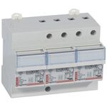 Legrand Überspannungsableiter mit integrierter Vorsicherung Typ 2+3/Class II+II nach IEC/EN 61643-11, 3+1 Schaltung,TT und TN-S Systeme,Nennspannung 230/400 VAC,Ableitstoßstrom Imax (8/20)12kA/Pol. Höchste Dauerspannung (Uc)275 VAC. Max.63A Nennlastrom. Isc max. 10 kA. Zum Schutz vor Überspannungen nachgeordneter Verbraucher durch indirekte Blitzeinschläge oder Schalthandlungen. Mit Plug-in Schutzmodul und Statusanzeige: Grün(SPD betriebsbereit) Orange (Plug-in Schutzmodul austauschen), mit Fernmeldekontakt zur Signalisierung des Schutzstatus.