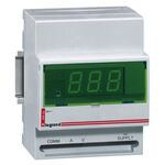 Legrand Amperemeter/Voltmeter, digital, Amperemeter: Indirekte Messung über Stromwandler (TI) mit Nennstrom 5 A. Abgleich der Skala (Display) in Abhängigkeit des Stromwandlers. Voltmeter: Messen von Gleich-oder Wechselspannung. Versorgungsspanung: 230V 50/60Hz, Anzeigebereich: Strom(I) 0 - 800A, Spannung (U) 0 - 500V. Ampermeter/Voltmeter 4-modulig, Befestigung auf Hutprofilschiene EN 60715 durch rastende Schnellbefestigung.