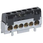 Legrand Klemmenleiste IP 20, berührungssicher, schwarz, für Schienenmontage (Schiene 12 x 2 mm) bzw. Verteilermontage, Kennzeichnung z.B. mit Duplix, Eingang: 1 x 10 bis 35 mm², Abgang: 5 x 6 bis 25 mm², Länge: 62 mm, max. 100 A/400 VAC bei 25 mm² Eingang, max. 80 A /400 VAC bei 16 mm² Eingang, nach IEC 60998-2-1.