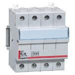 Legrand Sicherungstrenner, 3-polig mit mitschaltendem Neutralleiter, für Zylindersicherungen 10 x 38 mm, Bemessungsspannung 500 VAC, Bemessungsskurzschlussstrom Icc 100 kA, Befestigung auf Hutprofilschiene EN 60715. Sicherungstrenner nach IEC 60269-2, IEC 60947-3.