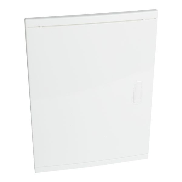 Legrand Unterputzverteiler Ekinoxe, mit Kunststofftür, Signalweiß RAL 9003, Schutzart IP30 - IK05, 2-reihig, 24+4 Module/Reihe, Abmessung 430 x 330 x 87 (Höhe x Breite x Tiefe in mm), selbsverlöschend 750 °C, Komplettset inkl. Mauerkasten und Tür, inklusive N- und PE-Klemmen und Abdeckstreifen, Schutzklasse II. Türen rechst und links anschlagbar. Nach EN 62208, für den Bau von Installationsverteilern nach EN 61439-3. Geeignet für Unterputz- und Hohlwandmontage, Hohlwandmontagesatz separat bestellen (Best.-Nr. 001490)