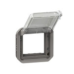 Plexo New Einsatz Mosaic Adapter mit transparentem Klappdeckel verschließbar mit Schraubenschlüssel 091945 in der Farbe: Grau. Einsätze müssen in einem Tragring (Unterputzrahmen ) oder einem Aufputzgehäuse installiert werden.