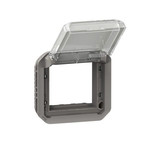 Plexo New Einsatz Mosaic Adapter mit transparentem Klappdeckel. Einsätze müssen in einem Tragring (Unterputzrahmen ) oder einem Aufputzgehäuse installiert werden.
