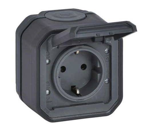 | Kurzbeschreibung | Plexo New FRAP Schutzkontakt-Steckdose Steckkle EB,IP44,IK08, Anthrazit |