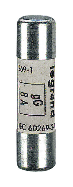 Legrand Zylindersicherung, Betriebsklasse gG (trägflink), Bemessungsstrom 6 A, Größe 10 x 38 mm, Bemessungsspannung 500 VAC, Ausschaltvermögen 100 kA, ohne Kennmelder, Betriebsklasse gG - Ganzbereichs-Schutz für allgemeine Zwecke, für Kabel- und Leitungsschutz.