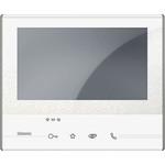 CLASSE 300 X13E VIDEO-HAUSSTATION MIT SMARTPHONE-ANBINDUNG Hörerlose Farbvideo-Hausstation in 2-Draht-Technik mit 7“ (17,8 cm, 16:9) LCD-Touchscreen, integrierter Induktionsschleife für Hörgeräteträger, Anrufbeantworterfunktion mit Audio-/Videospeicher (Memory) und integrierter WLAN-Schnittstelle zur Anbindung an bis zu 10 Smartphones. Über die entsprechende App kann die komplette Funktionalität der Hausstation (Videobild, Gespräch, Türöffnen, zusätzliche Kameras, etc.) auf dem Smartphone wiedergegeben werden. Verfügt über insgesamt 4 zusätzliche Sensortasten für die Hauptfunktionen (Tür öffnen, Gespräch annehmen, Türstation ein-/ umschalten) bzw. eine frei konfi gurierbare „Favoriten“-Taste zur Hinterlegung einer oft verwendeten Funktion, wie z. B. Treppenhauslicht, Intern Sprechen, zusätzliche Schaltfunktionen. Fühlbare Führungsleisten für schnelleren Zugriff auf die Sensortasten „Türöffnen“ und „Gespräch annehmen“. Der Zugriff zu den Einstellungen (z. B. Lautstärke, Farbe/ Helligkeit des Bildschirms) und weiterführenden Funktionen erfolgt über den Touchscreen. 16 verschiedene Ruftöne zur Auswahl. NachrichtenFunktion: Informationen/Notizen für Mitbewohner können, über die Tastatur am Touchscreen oder mittels Stimmaufnahme, hinterlassen werden. Anrufbeantworter-Funktion: Ist diese bei Abwesenheit aktiviert, können Besucher über die Türstation eine Audionachricht hinterlassen. Zusätzlich wird ein Video des Besuchers gespeichert. LED-Anzeige für: Ruftonabschaltung, Verfügbarkeit einer Nachricht. Die Konfi guration kann physisch (durch Konfi guratoren) oder mittels Menü direkt am Touchscreen durchgeführt werden. Bei der Wandmontage (erfolgt mittels mitgelieferter Wandhalterung) wird, zur Unterbringung der Anschlusskabel, eine Standard-Installationsdose dringend empfohlen. Anschluss für BUS, Etagenruf und Zusatzläutewerk. Maße: B × H × T: 193,5 × 162 × 22 mm, Farbausführung: Light (Weiß)