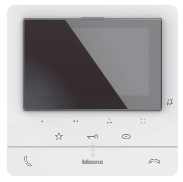 Hörerlose AP-Videohausstation CLASSE100 V16E mit Induktionsschleife für Hörgeräteträger2-Draht-Bussystem, Farb-LCD-Display 5" (12,7 cm), mit Induktionsschleife für Hörgeräteträger, freies Gegensprechen, neben den beiden physischen Gesprächstasten (Gespräch annehmen bzw. beenden), verfügt sie über 3 Sensortasten für die Funktionen: Tür öffnen, Treppenhauslicht einschalten (Aktivator Best.Nr. 346210 wird benötigt) und Türstation ein- bzw. umschalten. Weiters enthält sie 4 frei konfigurierbare Zusatztasten (z. B. für Intern Sprechen, zusätzlicher Türöffner, etc.). 16 melodische Ruftöne einstellbar. Inkl. Arztschaltung/Türomatfunktion. Für Tür-/Etagenruf mit Rufunterscheidung. Lautstärke von Rufton und Gespräch sowie Farbe und Helligkeit des Bildschirms werden über das OSD-Menü eingestellt, welches über einen seitlichen Regler bedient wird. LED-Anzeige für: Ruftonabschaltung, Türöffner- und Verbindungsstatus. Aufputzmontage mittels mitgelieferter Wandhalterung. Ein Tischzubehör (2 Stück von Best.Nr. 344692 werden benötigt) ist separat erhältlich. Anschluss für BUS, Etagenruf und Zusatzläutewerk.Maße B × H × T: 164 × 165 × 18,5 mm