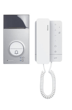 Flex’ONE Audio-Set mit Türstation LINEA 3000 und Hausstation CLASSE 100 A16MDas Set in 2-Draht-Technik enthält alle benötigten Teile zur Realisierung einer Einfamilienhaus-Sprechanlage. Die Erweiterung auf ein Zweifamilienhaus erfolgt durch das Hinzufügen einer 2. Hausstation nach Wahl. Das Set besteht aus:- 1 Aufputz-Türstation LINEA 3000 mit Frontblende aus ZAMAK. Enthält standardmäßig 2 Ruftasten und kann, mittels Schiebeschalter, als Ein- oder Zweifamilienhaus konfiguriert werden. Ausgestattet mit Namensschild inkl. helligkeitsgesteuerter Hinterleuchtung (weiße LEDs) und Status-LEDs für Gespräch und Türöffner. Der Türöffner (max. 30 Ohm Innenwiderstand) wird direkt an die Klemmen S+ und S– (18 V, 4 A Stoßstrom, 250 mA Haltestrom) angeschlossen. Die Türstation kann mittels UP-Dose (Best. Nr. 350020) und Zubehör (Best.Nr. 343061) Unterputz versetzt werden. Schutzart IP 54, Schlagfestigkeit IK 10; Abmessungen: B × H × T: 100 × 190 × 26 mm; Farbe: ähnlich RAL 9007- 1 Audio-Netzgerät- 1 Aufputz-Hausstation CLASSE 100 A16M mit HandhörerSie verfügt über 3 Sensortasten für: Tür öffnen, Treppenhauslicht einschalten (Aktivator Best.Nr. 346210 wird benötigt) und Türstation ein- bzw. umschalten sowie über 4 frei konfigurierbare Zusatztasten (z. B. Intern Sprechen, zusätzlicher Türöffner, etc.). 16 melodische Ruftöne einstellbar. Inkl. Arztschaltung/Türomatfunktion. Für Tür-/Etagenruf mit Rufunterscheidung. Die Lautstärke des Ruftons wird mittels seitlichem Regler eingestellt. LED-Anzeige für: Ruftonabschaltung und Türöffnerstatus. Aufputzmontage mittels mitgelieferter Wandhalterung. Ein Tischzubehör (Best.Nr. 344692) ist separat erhältlich. Anschluss für BUS, Etagenruf und Zusatzläutewerk. Maße B × H × T: 102 × 169 × 29 mm- Schaltplan und Bedienungsanleitungen