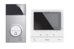 Flex’ONE Video-Set mit Türstation LINEA 3000 und Hausstation CLASSE 100 V16EDas Set in 2-Draht-Technik enthält alle benötigten Teile zur Realisierung einer Einfamilienhaus-Sprechanlage. Die Erweiterung auf ein Zweifamilienhaus erfolgt durch das Hinzufügen einer 2. Hausstation nach Wahl. Das Set besteht aus:- 1 Aufputz-Türstation LINEA 3000 mit Frontblende aus ZAMAK. Kamerabeleuchtung mit weißen LEDs für bessere Nachtsicht. Aufnahmewinkel: 105° horizontal/80° vertikal (nicht schwenkbar). Enthält standardmäßig 2 Ruftasten und kann, mittels Schiebeschalter, als Ein- oder Zweifamilienhaus konfiguriert werden. Ausgestattet mit Namensschild inkl. helligkeitsgesteuerter Hinterleuchtung (weiße LEDs) und Status-LEDs für Gespräch und Türöffner. Der Türöffner (max. 30 Ohm Innenwiderstand) wird direkt an die Klemmen S+ und S– (18 V, 4 A Stoßstrom, 250 mA Haltestrom) angeschlossen. Die Türstation kann mittels UP-Dose (Best. Nr. 350020) und Zubehör (Best.Nr. 343061) Unterputz versetzt werden. Schutzart IP 54, Schlagfestigkeit IK 10; Abmessungen: B × H × T: 100 × 190 × 26 mm; Farbe: ähnlich RAL 9007- 1 Video-Netzgerät- 1 hörerlose Aufputz-Hausstation CLASSE 100 V16E mit Induktionsschleife für Hörgeräteträger2-Draht-Bussystem, Farb-LCD-Display 5" (12,7 cm), mit Induktionsschleife für Hörgeräteträger, freies Gegensprechen, neben den beiden physischen Gesprächstasten (Gespräch annehmen bzw. beenden), verfügt sie über 3 Sensortasten für die Funktionen: Tür öffnen, Treppenhauslicht einschalten (Aktivator Best.Nr. 346210 wird benötigt) und Türstation ein- bzw. umschalten. Weiters enthält sie 4 frei konfigurierbare Zusatztasten (z. B. für Intern Sprechen, zusätzlicher Türöffner, etc.). 16 melodische Ruftöne einstellbar. Inkl. Arztschaltung/Türomatfunktion. Für Tür-/Etagenruf mit Rufunterscheidung. Lautstärke von Rufton und Gespräch sowie Farbe und Helligkeit des Bildschirms werden über das OSD-Menü eingestellt, welches über einen seitlichen Regler bedient wird. LED-Anzeige für: Ruftonabschaltung, Türöffner- und Verbindungsstatus. Aufputzmontage mittels mitgelieferter Wandhalterung. Ein Tischzubehör (2 Stück von Best.Nr. 344692 werden benötigt) ist separat erhältlich. Anschluss für BUS, Etagenruf und Zusatzläutewerk. Maße B × H × T: 164 × 165 × 18,5 mm- Schaltplan und Bedienungsanleitungen