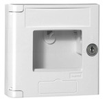 Legrand Schlüsselkasten IP 44 - IK07, leer, mit Signalkontakt 4-48 VDC/100 mA zur Meldung z.B. "Kasten geöffnet". Hammer mit Kette nicht im Lieferumfang, optional bestellbar (Best.-Nr. 001391), Abmessung (HxBxT): 125 x 125 x 45, Farbe: Weiß, Schutzklasse II, drei Vorprägungen PG 7/ M 12 für Leitungeinführung. Schlüsselkasten für Aufputzmontage.