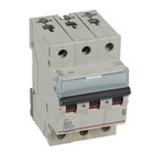 Legrand Leitungsschutzschalter TX3 nach EN 60898-1, VDE 0641-11, EN 60947-2, 3-polig, B-Charakteristik, Bemessungsstrom In 63 A, Bemessungsschaltvermögen Icn 6 kA nach EN 60898-1, Bemessungsspannung Un 400 VAC, Bemessungsfrequenz 50/60 Hz, Energiebegrenzungsklasse 3, Befestigung auf Hutprofilschiene EN 60715 durch eine rastende Schnellbefestigung, klare Information vorne auf jedem Gerät, eindeutige Schaltstellungsanzeige rot/grün am Schalthebel, mit Beschriftungsfenster, mit Untersteckschutz zum sicheren Einführen des Leiters in Fahrstuhlklemme, Anbau von Hilfsgeräten möglich. Leitungsschutzschalter mit B-Charakteristik sind vornehmlich für den Leitungsschutz in Licht- und Steckdosen-Stromkreisen bestimmt.