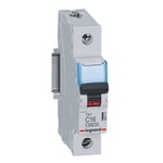 Legrand Leitungsschutzschalter TX3 nach EN 60898-1, VDE 0641-11, EN 60947-2, 1-polig, C-Charakteristik, Bemessungsstrom In 16 A, Bemessungsschaltvermögen Icn 10 kA nach EN 60898-1, Bemessungsspannung Un 230/400 VAC, Bemessungsfrequenz 50/60 Hz, Energiebegrenzungsklasse 3, Befestigung auf Hutprofilschiene EN 60715 durch eine rastende Schnellbefestigung, klare Information vorne auf jedem Gerät, eindeutige Schaltstellungsanzeige rot/grün am Schalthebel (verriegelbar), mit Beschriftungsfenster, mit Untersteckschutz zum sicheren Einführen des Leiters in Fahrstuhlklemme, Anbau von Hilfsgeräten möglich. Leitungsschutzschalter mit C-Charakteristik sind für den Leitungsschutz bei Geräten mit hohen Einschaltströmen (z.B. Motoren und Transformatoren) vorgesehen.