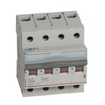 Legrand Lasttrennschalter DX3, 4-polig, 125A 400 VAC, nach EN 60947-3, EN 60669-2-4. Gebrauchskategorie AC-22A. Befestigung auf Hutprofilschiene EN 60715 durch rastende Schnellbefestigungen, klare Information vorne auf jedem Gerät, eindeutige Schaltstellungsanzeige rot/grün am Schalthebel (verriegelbar), mit Beschriftungsfenster, einpolig verschienbar mit Legrand Stiftkammschienen, Anbau von Hilfsgeräten möglich.