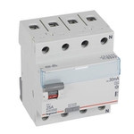 Legrand Fehlerstromschutzschalter TX3, Typ A, für Wechsel- und pulsierende Gleichfehlerströme nach VDE 0664-10, EN 61008-1, unverzögert, 4-polig, Bemessungsstrom In 25 A, Bemessungsfehlerstrom Idn 30 mA, Bemessungsspannung Un 400 VAC, Bemessungsfrequenz 50 Hz, Stoßstromfest bis 250 A, Bemessungskurzschlussstrom 10 kA bei geeigneter Vorsicherung, Befestigung auf Hutprofilschiene EN 60715 durch rastende Schnellbefestigungen, klare Information vorne auf jedem Gerät, eindeutige Schaltstellungsanzeige rot/grün am Schalthebel, mit Beschriftungsfenster, mit Untersteckschutz zum sicheren Einführen des Leiters in Fahrstuhlklemme, Anbau von Hilfsgeräten möglich.