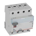Legrand Fehlerstromschutzschalter TX3, Typ A, für Wechsel- und pulsierende Gleichfehlerströme nach VDE 0664-10, EN 61008-1, unverzögert, 4-polig, Bemessungsstrom In 25 A, Bemessungsfehlerstrom Idn 100 mA, Bemessungsspannung Un 400 VAC, Bemessungsfrequenz 50 Hz, Stoßstromfest bis 250 A, Bemessungskurzschlussstrom 10 kA bei geeigneter Vorsicherung, Befestigung auf Hutprofilschiene EN 60715 durch rastende Schnellbefestigungen, klare Information vorne auf jedem Gerät, eindeutige Schaltstellungsanzeige rot/grün am Schalthebel, mit Beschriftungsfenster, mit Untersteckschutz zum sicheren Einführen des Leiters in Fahrstuhlklemme, Anbau von Hilfsgeräten möglich.