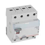 Legrand Fehlerstromschutzschalter TX3, Typ A-S, für Wechsel- und pulsierende Gleichfehlerströme nach VDE 0664-10, EN 61008-1, selektiv, verzögert mindestens 40 ms, 4-polig, Bemessungsstrom In 40 A, Bemessungsfehlerstrom Idn 300 mA, Bemessungsspannung Un 400 VAC, Bemessungsfrequenz 50 Hz, Stoßstromfest bis 3000 A, Bemessungskurzschlussstrom 10 kA bei geeigneter Vorsicherung, Befestigung auf Hutprofilschiene EN 60715 durch rastende Schnellbefestigungen, klare Information vorne auf jedem Gerät, eindeutige Schaltstellungsanzeige rot/grün am Schalthebel, mit Beschriftungsfenster, mit Untersteckschutz zum sicheren Einführen des Leiters in Fahrstuhlklemme, Anbau von Hilfsgeräten möglich.