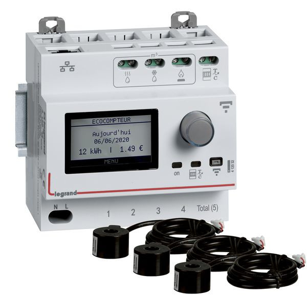 Legrand EMDX³ Smart Ecometer-Set, vernetzter Energiezähler "EMDX³ with Netatmo" 100-240 VAC, inkl. 3 Stromwandlern je 80A AC, mit LED Melde- und Statusanzeige. Kann lokal Arbeiten oder in eine vernetzte Installation"with Netatmo" eingebunden werden. Messen des Gesamtstromverbrauchs 1-phasig, für das Gebäude und den Teilverbrauch in 5 spezifischen Bereichen wie Heizung, Klimaanlage/Kühlung, Warmwasserbereitung, Steckdosen und andere Verbrauchsarten (z. B. Beleuchtung oder Steckdosen für Elektrofahrzeuge). 5 Teilungseinheiten, zum Einbau in Elektroverteilung auf Hutprofilschiene EN 60715.
