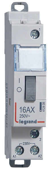 Legrand Fernschalter CX3, 1-polig, 16 A/ 250 VAC, mechanisch, Steuerspannung AC 12 V, 1 Schließer, Schaltzustandsanzeige am Handschalter, Handschaltung ON/OFF, Anbau von bis zu 2 Hilfsgeräten möglich, Fernschalter nach EN 60669-2-2.