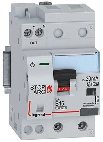 Brandschutzschalter DX³ STOP ARC nach IEC/EN 62606. Fehlerlichtbogen-Schutzeinrichtung AFDD zur Vermeidung der Brandgefahr durch parallele und serielle Fehlerlichtbögen. DX³ STOP ARC eignen sich für den Einbau gemäß DIN VDE 0100-420: 2016-02. LED-Zustandsanzeige für das einfache erkennen des Betriebsstatus, Selbstüberwachung der AFDD-Einheit mit integriertem , täglichen Selbsttest. Beschriftungsfenster, Rot/Grün am Schalthebel, Anbau von Hilfsgeräten möglich. Neutralleiteranschluss rechts. Verschienbar mit Legrand Stiftkammschienen. Bemessungsspannung 230 V~ , Spannungsart: AC, Frequenz: 50 Hz, Energiebegrenzungsklasse 3, Schutzart IP 20.