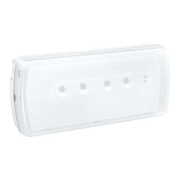 LED Bereitschaftsleuchten zertifiziert nach IEC und EN 60598-2-22, mit Hochleistungs-LEDs. Schraubklemmen 2 x 2,5 mm2, Schutzart IP 42 sowie Schlagfestigkeit IK 04, Nennbetriebsdauer 1 und 3 Std., Ni-Cd oder Ni-MH-Akku, Wiederaufladezeit 24 Stunden, Ladungsüberwachung mittels grüner LED, Versorgungsspannung: 230 V +/–10 %, 50/60 Hz Klasse II, Unterputzmontage für Decke und Wandmontage mit Installationsbox (Best.Nr. 661720/061721) möglich. Einzelbatterieleuchte adressierbar mit integrierter Selbsttestfunktion. Das Ergebnis wird an den zwei Signal-LEDs (Grün = OK, Gelb = DEFEKT) angezeigt. Die Leuchten können wahlweise in Daueroder Bereitschaftsschaltung betrieben werden. Bei Verwendung der Überwachungszentrale (Best.Nr. 062600) ist eine Adressierung der Leuchte erforderlich. Die Leuchten werden mittels 2-poliger Busleitung (2 × 1,5 mm2) mit der Zentrale verbunden. Die Adressierung der Leuchte erfolgt mittels der Programmier-Fernbedienung (Best.Nr. 062610). Die Visualisierung erfolgt über die Software (Best.Nr. 062602).