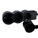 Flache Steckdosenleiste 3x Steckdose, 3 Meter Kabel Farbe: Schwarz